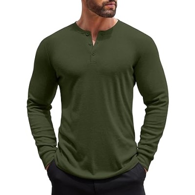 Men's Henley Shirts Long Sleeve Button T-Shirt Lightweight Fashion Casual Pullover Shirt